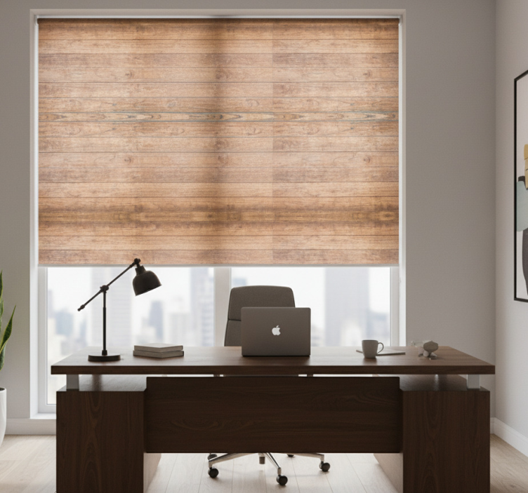 Installing the Office blind with horizontal rustic wood slats Office blind is a breeze! In just a few simple steps, you can have your new blind up and ready to go. Simply follow the easy assembly instructions, and you’ll enjoy the perfect blend of style and functionality in no time!