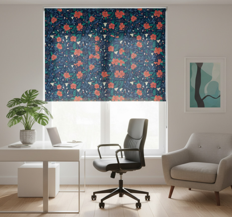 The Office blind with nordic style floral design Office blind is the ideal choice for those looking to enhance their interior decor. Its unique floral pattern brings a touch of nature indoors, creating a serene atmosphere in any room. This blind not only beautifies your space but also regulates temperature and provides security by allowing you to see outside without being seen. Elevate your decor with this exquisite piece that combines style and practicality!