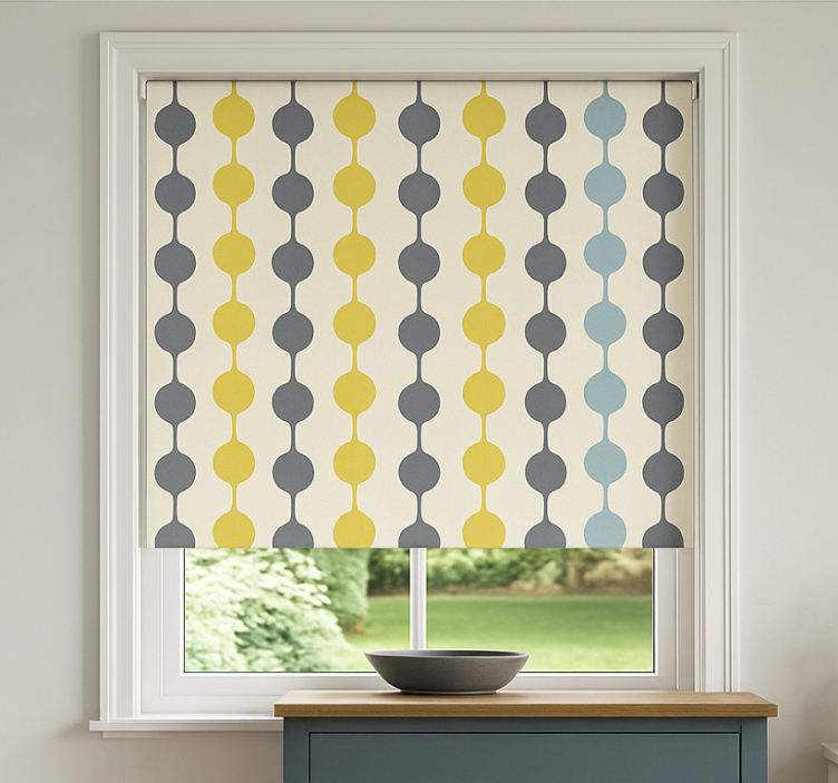 Reference: E6088Transform your living space with our stunning Scandinavian blind with hanging colorful circles. This beautifully designed roller blind features vibrant, playful circles that dance across the fabric, creating an atmosphere of joy and creativity. With easy assembly in two clicks, effortless cleaning, and a unique ability to control light and privacy, this blind is not just a window covering but a statement piece for your home!