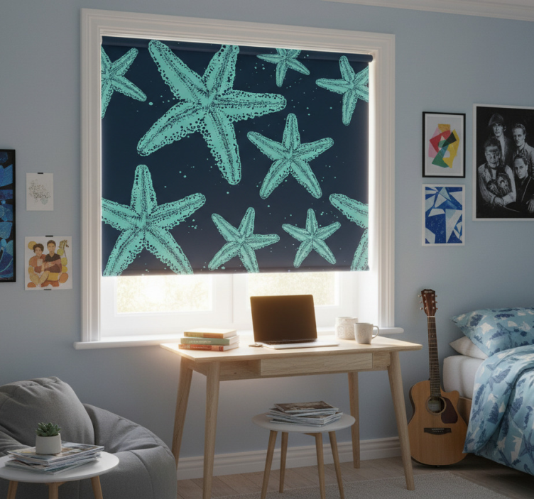 Teenage roller blind starfish blue tones