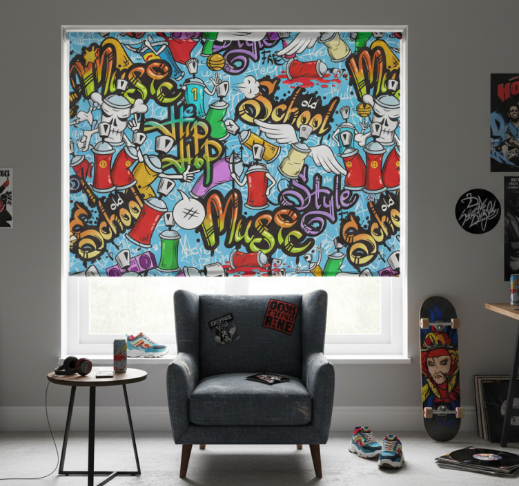Reference: E7577Introducing our Teenage roller blind urban graffiti hip-hop style, a vibrant and edgy addition that brings your space to life! This unique design features an urban graffiti pattern that echoes the spirit of hip-hop culture, making it perfect for any teenager's room. Bursting with color and creativity, this roller blind not only enhances your decor but also provides essential functionality. With easy assembly in 2 clicks, simple cleaning, and quick disassembly, managing your window treatment has never been easier! It effectively protects your room from direct sunlight while offering privacy when lowered. Experience the joy of regulating your room temperature and enjoy peace of mind knowing you can see out without being seen!