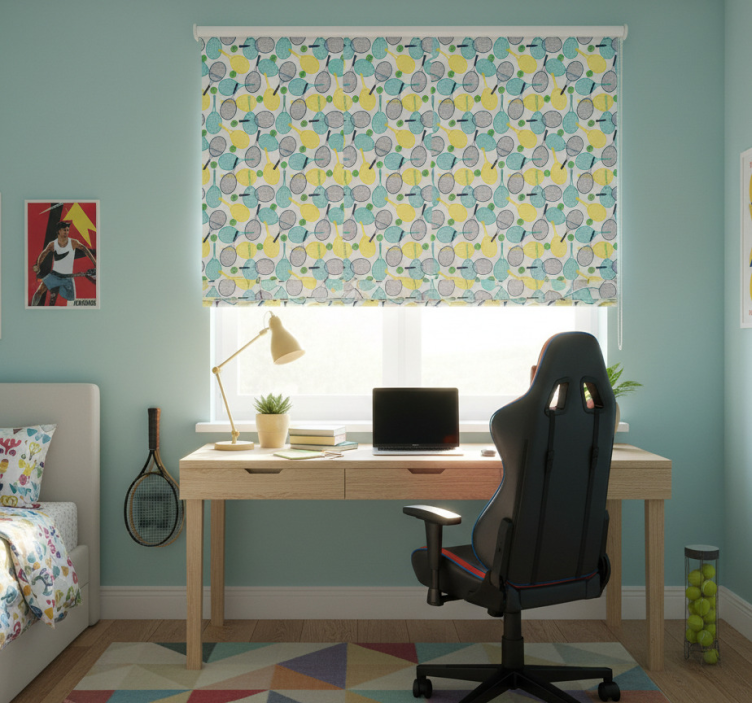 The Teenage roller blind with colorful racket patterns is an ideal choice for decoration because it effortlessly combines style and functionality. This teenage roller blind transforms any ordinary room into a lively space, sparking joy and inspiration. Its eye-catching design makes it a focal point, encouraging creativity and making it a perfect fit for a teenager's room. Enhance your home decor with this roller blind that not only looks great but also serves essential practical purposes!