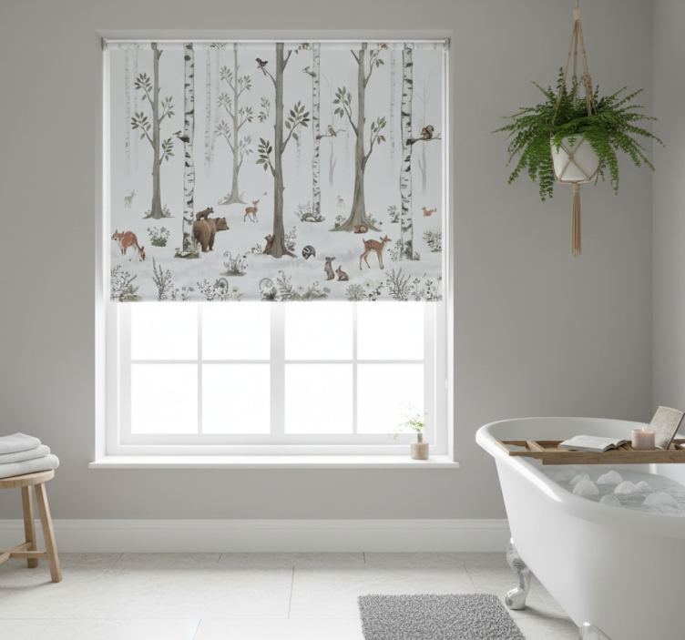 Reference: E6159Introducing our Tree roller blind playful woodland design, a delightful addition to your home decor that brings the charm of nature indoors! This enchanting design features whimsical woodland creatures surrounded by lush greenery, creating a playful atmosphere perfect for any room. With easy assembly in just two clicks and simple cleaning options, this roller blind combines functionality with aesthetic appeal! The Tree roller blind playful woodland design also protects your space from direct sunlight, ensuring you maintain the perfect ambiance throughout the day.