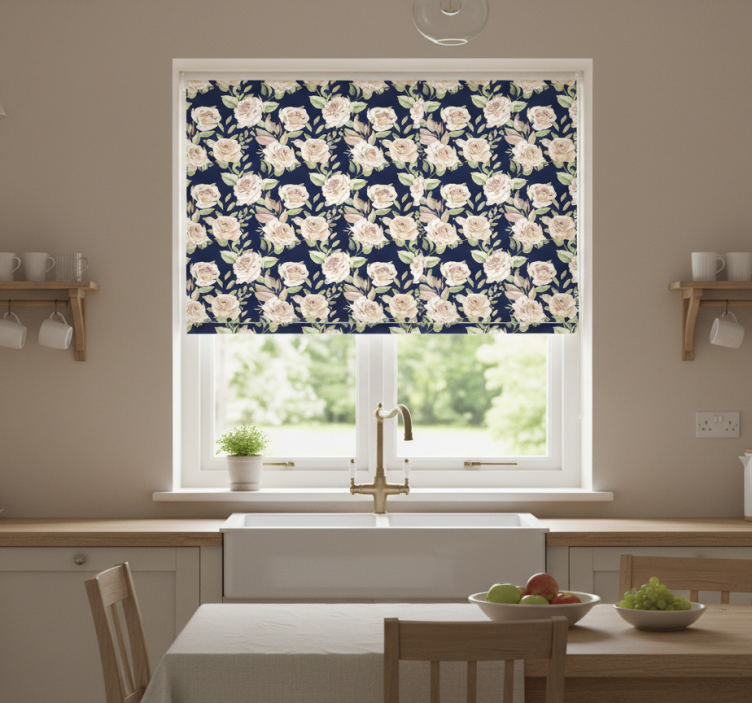Elevate your interior design with the Vintage rose pattern on blue background kitchen blind kitchen blind. Its enchanting floral design invites warmth and sophistication into your kitchen, making it an inspiring centerpiece. The combination of vintage roses and a serene blue backdrop creates a delightful atmosphere that encourages relaxation and joy, making every meal a special occasion!