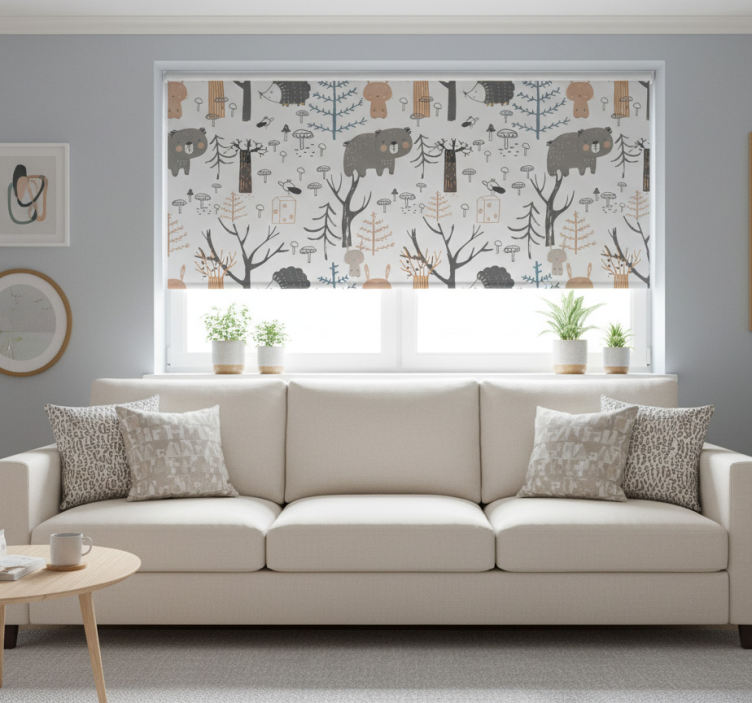 Reference: E8455Introducing our stunning White blind scandinavian forest with animals, a breathtaking design that brings the serene beauty of nature into your home. Featuring a captivating Scandinavian forest scene adorned with charming animals, this roller blind transforms any space into a tranquil retreat. The intricate graphics and soft color palette evoke a sense of calm and harmony, making it a perfect addition to your interior decor.