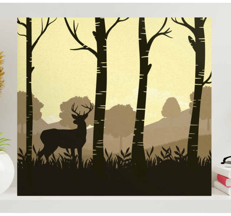 Immerse yourself in the serene beauty of nature with our Stag canvas silhouette of stag among trees. This exquisite artwork features a majestic stag gracefully posed among lush trees, soft grass, and delicate foliage, capturing the essence of wildlife in a tranquil forest setting. The stunning silhouette evokes a sense of peace and connection to the great outdoors, making it a perfect centerpiece for any nature lover's home!