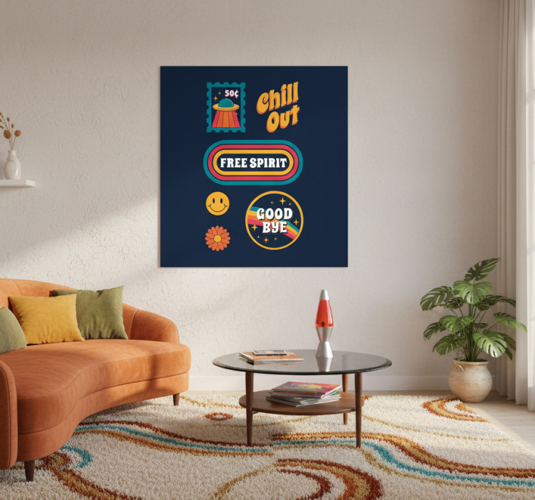 To display your 70's fun and chill living room poster, we recommend using double-sided adhesive tape on the back for a clean look. Alternatively, you can frame it for added elegance, or use thumbtacks and reusable blu-tack for a casual aesthetic. Enjoy the effortless charm it brings to your wall posters for living room!