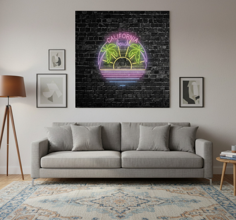 Reference: G1114Introducing the City poster california beach neon sign, a stunning piece of art that brings the vibrant spirit of California's beaches into your home! This poster features a striking design with high colour intensity that captures the essence of sunset hues, bustling ocean waves, and the iconic neon glow that lights up the night. Crafted with 180g/m2 grammage, it has a semi-matt finish without reflections, ensuring that every detail stands out beautifully!