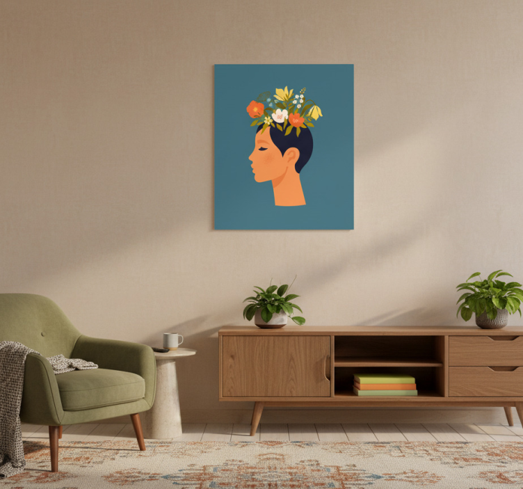 Reference: G968Introducing our stunning Flower poster of abstract woman on blue background, a captivating piece that seamlessly blends artistry and elegance. This design features a beautiful abstract representation of a woman adorned with vibrant floral motifs, all set against a serene blue background. The poster is printed on high-quality 180g/m2 paper, ensuring durability and a semi-matt finish that enhances its visual appeal without reflections. With high colour intensity, this artwork is sure to bring a fresh and lively atmosphere to any space!