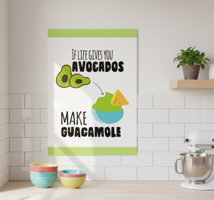 Reference: G589Brighten up your kitchen with our Funny avocado pun kitchen poster! This delightful design features vibrant avocado graphics paired with witty puns, making it a perfect conversation starter. The poster is crafted on 180g/m2 paper, ensuring durability with a semi-matt finish that minimizes glare while showcasing high color intensity. It's not just art; it's a playful addition to your home that brings smiles and laughter!