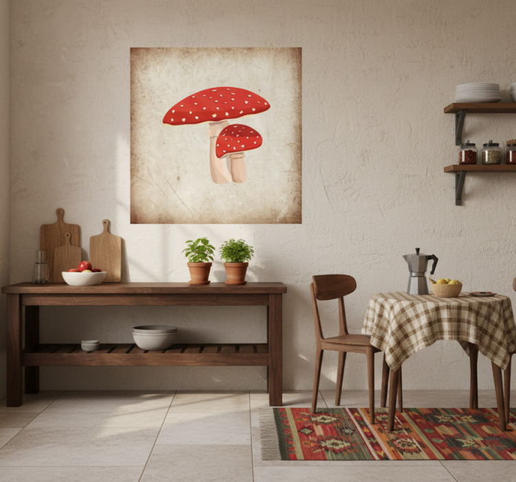 Reference: G610Introducing our stunning Kitchen poster amanita mushroom illustration, a perfect blend of artistry and nature! This design features vibrant colors and intricate details that capture the essence of the amanita mushroom, making it a captivating centerpiece for your kitchen. The 180g/m2 grammage ensures durability, while the semi-matt finish eliminates reflections, allowing the high color intensity to shine. Transform your space with this exquisite piece that sparks joy and conversation!