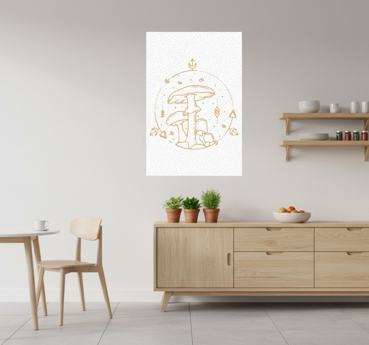Kitchen poster geometric mushroom line art