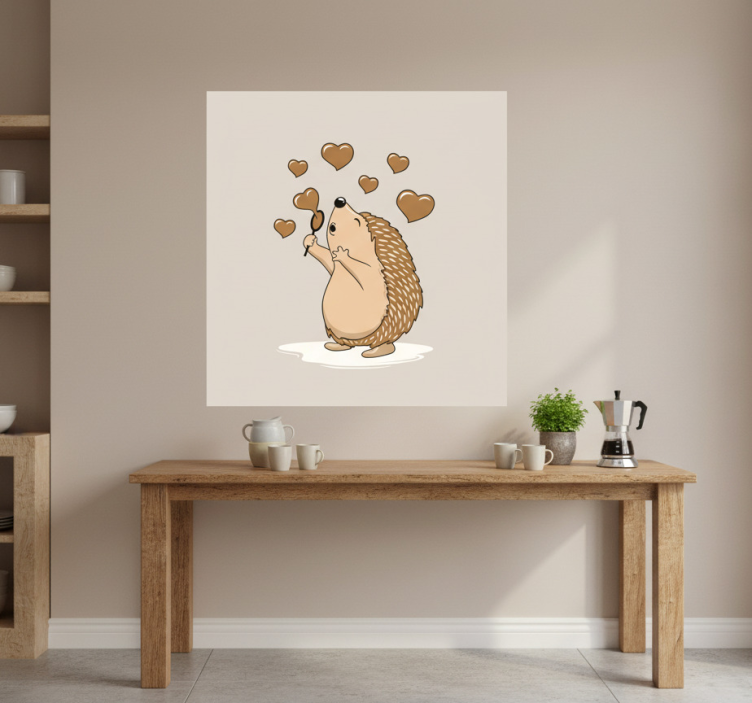 Reference: G601Introducing our charming Kitchen poster hedgehog with love hearts, a delightful addition to any culinary space! This whimsical design features an adorable hedgehog surrounded by vibrant love hearts, making it a perfect blend of fun and warmth. Printed on high-quality 180g/m2 paper with a semi-matt finish, the poster showcases high colour intensity that brings life to your kitchen walls.