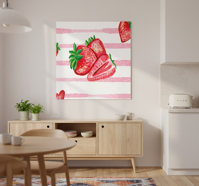 Transform your kitchen into a charming haven with the Kitchen poster seamless strawberries on striped background kitchen poster. This delightful design inspires creativity and warmth, making it the perfect addition to your home décor. The playful imagery of strawberries on a striped background not only adds a pop of color but also evokes a sense of joy and freshness, turning your cooking area into a cheerful retreat!