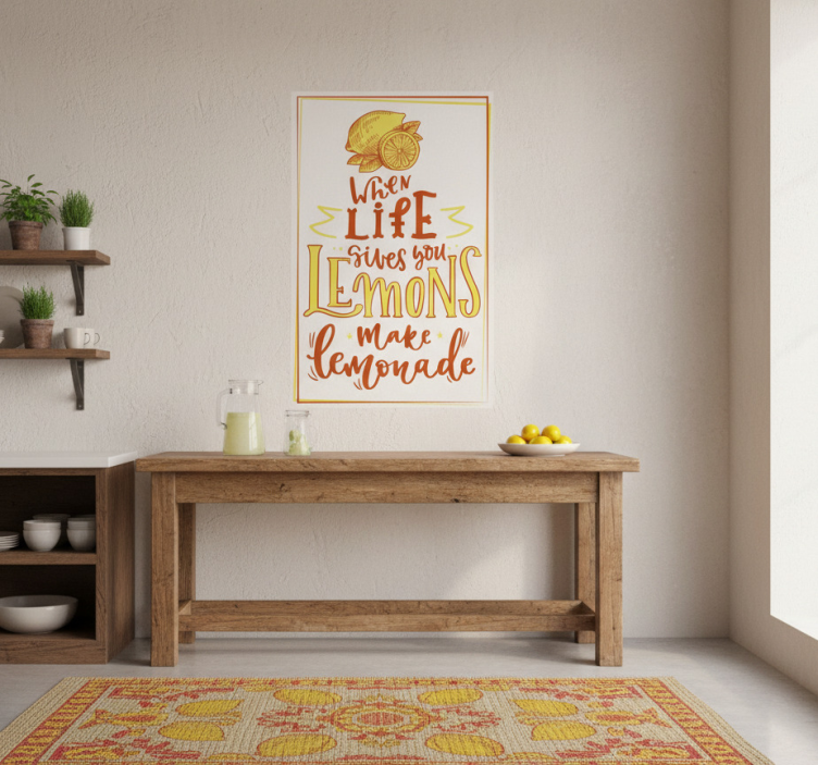 Reference: G591Introducing our vibrant Lemon sketch quote kitchen poster, a delightful addition to your culinary space! This eye-catching design features a playful lemon sketch accompanied by an inspiring quote that captures the zest of life. With a 180g/m2 grammage for durability, a semi-matt finish that minimizes reflections, and high color intensity that brings the artwork to life, this poster is perfect for elevating your kitchen's ambiance.