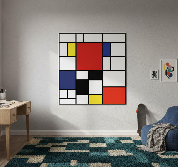 Reference: G798Introducing our stunning Living room poster in abstract color blocks, a vibrant piece that brings a burst of creativity to your space! This unique design showcases a harmonious blend of geometric shapes and vivid hues, creating an eye-catching focal point. With a premium 180g/m2 grammage, ideal for posters, and a semi-matt finish that eliminates reflections while maintaining high color intensity, it's perfect for enhancing your living area.