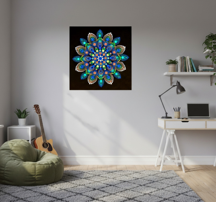 Reference: G778Introducing our stunning Living room poster mandala colorful dots, a breathtaking piece that seamlessly blends artistic flair with vibrant energy! This captivating design features a harmonious array of colorful dots arranged in an intricate mandala pattern, sure to elevate the ambiance of any space. With a 180g/m2 grammage for durability, a semi-matt finish that prevents reflections, and high color intensity, this poster is not just a decoration; it's a statement piece that brings joy and creativity to your living area!
