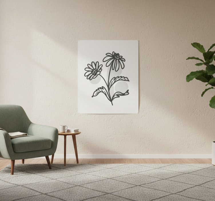 Living room poster with daisy flower line art