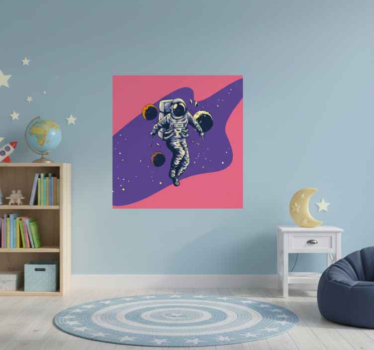 Reference: G953Introducing our delightful Nursery poster hand drawn astronaut flying style, a captivating design that features a whimsical astronaut soaring through a vibrant galaxy filled with stars and planets. This artistic piece is crafted on a premium 180g/m2 paper with a semi-matt finish, ensuring high colour intensity and an eye-catching visual that will brighten up any room!