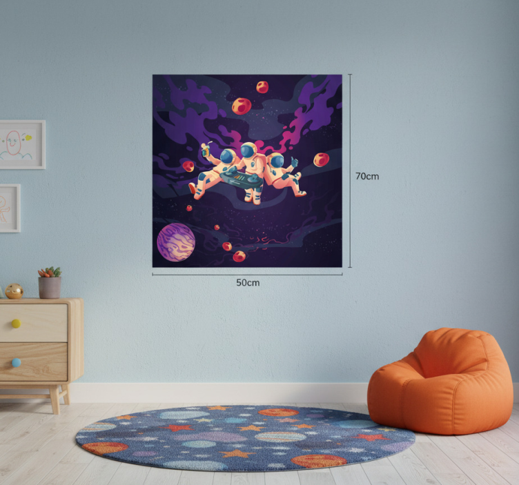 Reference: G926Introducing our delightful Nursery poster of playful cartoon astronauts, designed to spark imagination and joy! This vibrant design features whimsical characters floating among the stars, surrounded by colorful planets and playful details that create a magical atmosphere. With a 180g/m2 grammage and a semi-matt finish without reflections, this poster boasts high color intensity, ensuring it captures the attention of both children and adults alike!