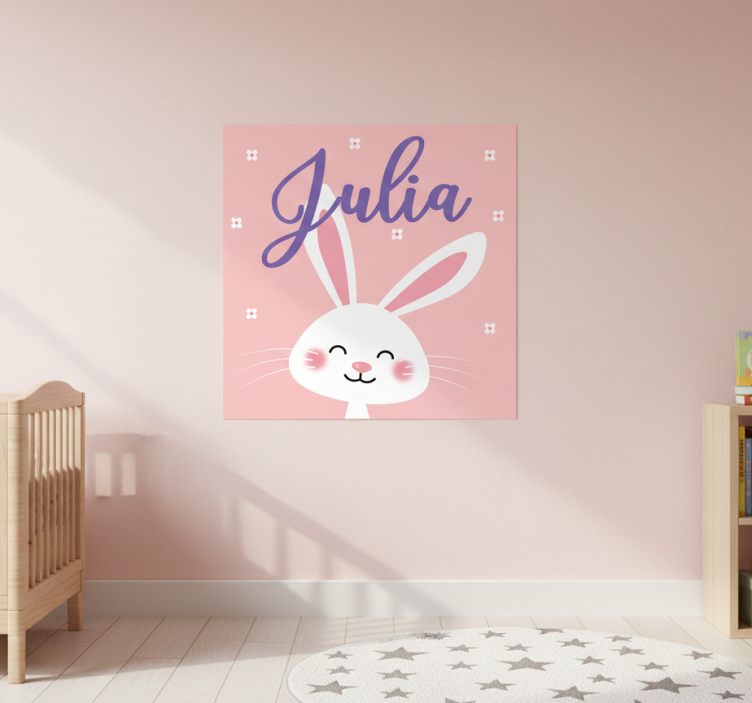 Placing the Nursery poster white bunny with name children wall poster is a breeze! We recommend using double-sided adhesive tape for a seamless look. Simply stick the tape to the back of the poster and press firmly against the wall for 10 seconds. Alternatively, you can frame it for added elegance or use thumbtacks and reusable blu-tack for a more casual approach.