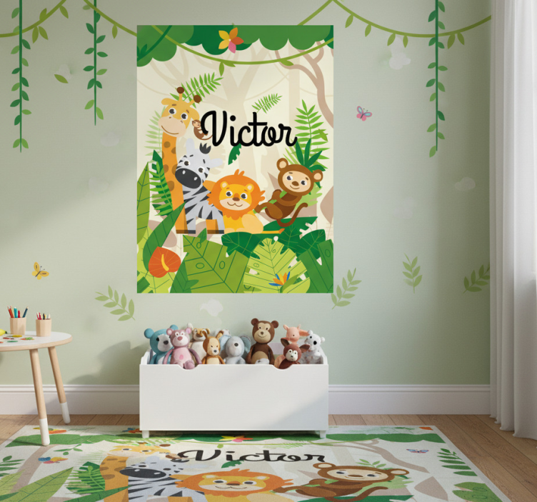 Reference: G940Introducing our delightful Nursery poster with custom jungle animals, designed to transform your child’s room into a vibrant adventure! This stunning poster features a semi-matt finish that minimizes reflections, allowing the high color intensity of the jungle animals to shine through beautifully. With a grammage of 180g/m2, it is perfect for displaying on any wall, making it a captivating focal point in your nursery.