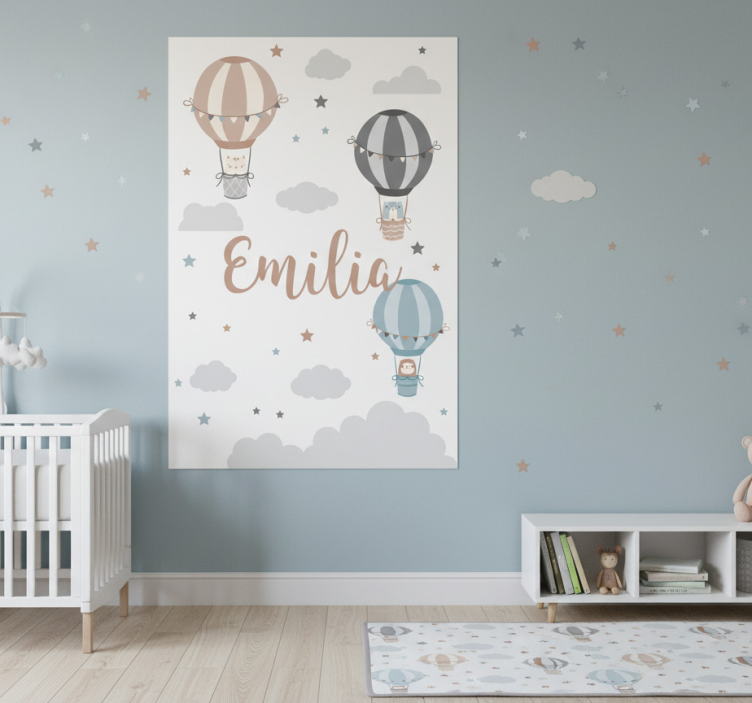 Reference: G943Introducing our charming Nursery poster with pastel balloons and clouds, a delightful addition to any child's room! This beautifully designed poster features an enchanting array of soft pastel colors, whimsical balloons floating amidst fluffy clouds, all set against a serene backdrop. The 180g/m2 grammage ensures durability while the semi-matt finish eliminates reflections, allowing the high color intensity to shine through, making it a visual delight!