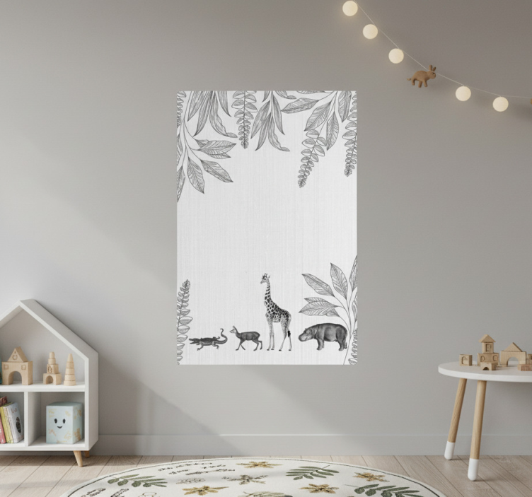 Transform your child's space into a whimsical adventure with our Nursery poster with safari animals and trees border nursery poster. This enchanting piece not only brings joy and inspiration but also stimulates imagination. It's perfect for sparking curiosity and wonder as children explore the vibrant colors and playful animals. Elevate your nursery decor with a touch of the wild!