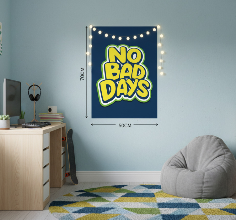Reference: G734Introducing our vibrant Poster for teenager no bad days, designed to uplift and inspire! This stunning poster features a semi-matt finish without reflections, ensuring high color intensity that brightens any space. The 180g/m2 grammage makes it ideal for posters, delivering durability and visual appeal perfect for a youthful environment!