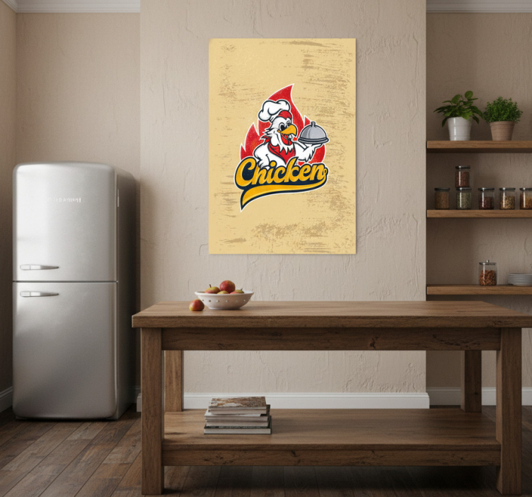 Reference: G644Introducing our Vintage chicken chef kitchen poster, a delightful piece of art that will bring warmth and charm to your kitchen! This design features vibrant colors and a semi-matt finish that beautifully captures the essence of rustic cooking. The high color intensity ensures that this poster stands out, while its 180g/m2 grammage makes it perfect for any wall. Whether you're a culinary enthusiast or simply love the quaintness of vintage decor, this poster is sure to inspire joy and creativity in your space!