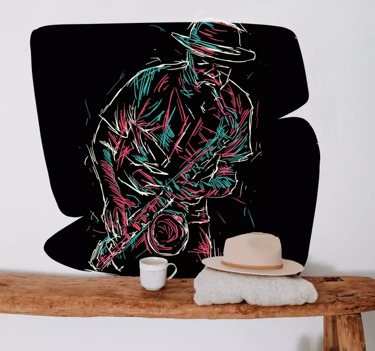Reference: A32732Abstract jazz saxophone player wall sticker