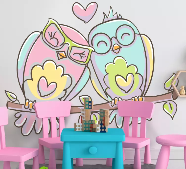 Introducing our Adorable love birds bird wall sticker, a delightful design featuring a charming couple of owls. This illustration captures the essence of love, with happy, cute birds in soft shades of pink and blue. Perfect for adding a touch of whimsy and joy to any space, this wall sticker transforms your walls into a vibrant celebration of love!