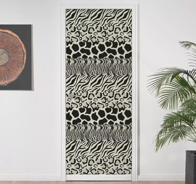 Transform your space with our Animal print pattern door sticker. This eye-catching design features a stunning black and white animal print that combines the fierce elegance of leopard and zebra patterns. Perfect for adding a touch of wildlife charm, this door sticker is crafted to enhance any flat surface with its striking graphic appeal!