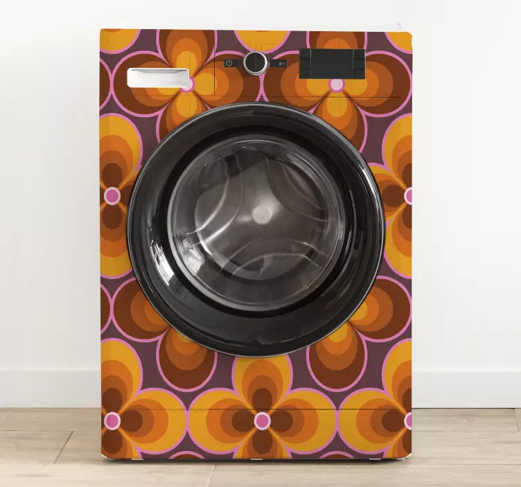 Introducing our stunning Appliance stickers retro floral design! This vibrant design showcases a beautiful blend of geometric flowers and abstract patterns, all presented in a psychedelic style that brings a groovy touch to your appliances. The colorful and bold design is sure to transform any mundane surface into a lively masterpiece, making your home feel more inviting and cheerful!