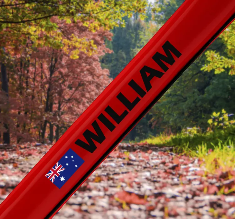 This customisable Australia bike cycling decal is perfect for your child's bike. Featuring the Australia symbol with stars and a name in black text on a red background, this high quality matte sticker is designed to not reflect with light and is very adhesive. It is also very durable and will not make air bubbles. Plus, if you choose to remove it, it will not leave any stains or residue. You can choose the size that best fits your needs, making this a great addition to any bike!