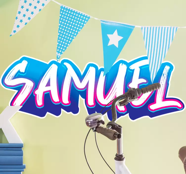 This custom graffiti urban decal is the perfect way to add a unique touch to your child's space. Featuring personalized text in a cool graffiti style font, this graffiti wall sticker is colored in beautiful shades of blue and pink that will look amazing on any wall. Your child will absolutely love having their name on their bedroom wall!