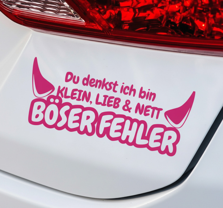 Reference: A53262Introducing the Car sticker bad mistake pink devil, a vibrant and eye-catching design that features a mischievous pink devil character that instantly grabs attention! This playful sticker combines bold colors with a fun illustration, making it a perfect addition to your vehicle or any flat surface that needs a touch of personality.