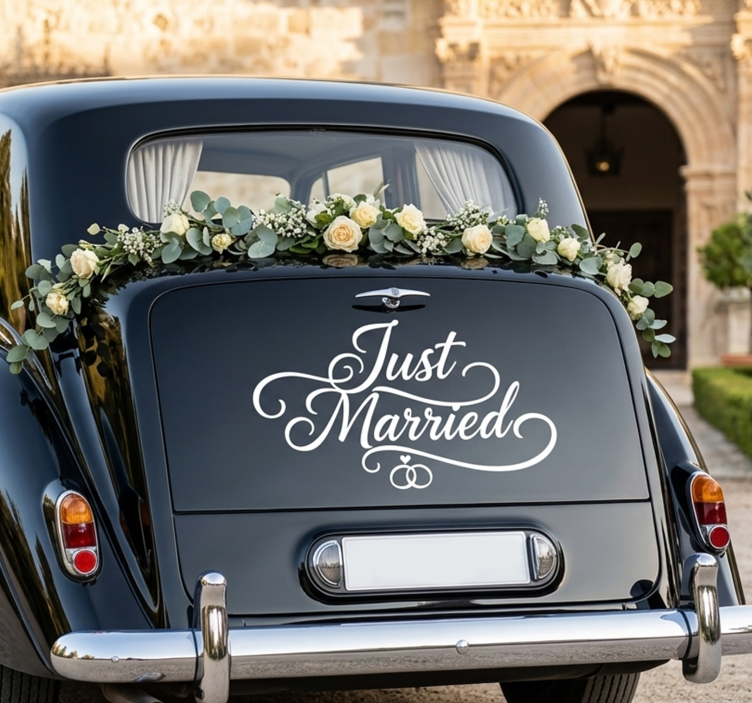 Reference: A54709Introducing our stunning Car sticker custom cursive "just married"! This beautifully designed sticker features a flowing cursive font that evokes joy and celebration, perfect for newlyweds. The elegant lettering is crafted to enhance the aesthetic of your vehicle, making it a delightful addition for your special day. The satin finish ensures that the design maintains its vibrancy without glare, allowing for excellent visibility and enjoyment in any lighting.