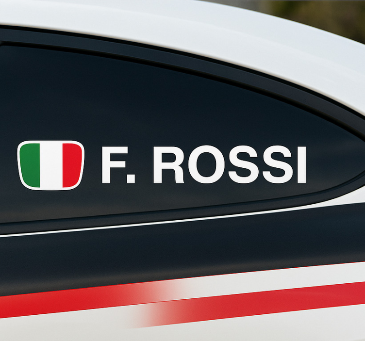 Reference: A54619Introducing our stunning Car sticker personalised name design with italian flag, a unique way to showcase your personality! This design features vibrant colors, a sleek layout, and a beautiful representation of the Italian flag, making it the perfect addition to your vehicle. It's not just a sticker; it's a statement piece that reflects your love for Italy while adding a personal touch with your name!