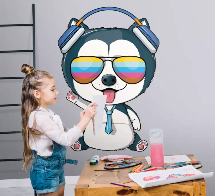 Reference: A48961A delightful character featuring a cheerful pet with stylish sunglasses and headphones. The playful design captures the essence of fun, making it perfect for children's spaces. Its unique style and vibrant colors add a joyful touch, encouraging creativity and imagination.