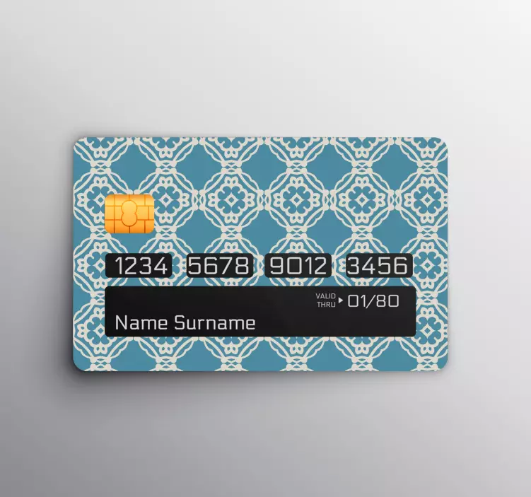 Transform your credit card with our stunning Credit card sticker with patterned design. Featuring an antique tile pattern in a vibrant blue, this ornamental sticker showcases a geometric design that adds a unique texture to your financial essential. Perfectly personalized, it’s not just a sticker; it's a statement piece that reflects your style!