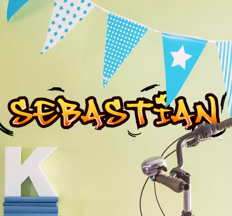 Reference: A50836A dynamic design featuring a customizable name in an energetic font, surrounded by cheerful birthday decorations. The playful colors and style make it perfect for adding a personal touch to children's spaces, celebrating individuality and creativity.