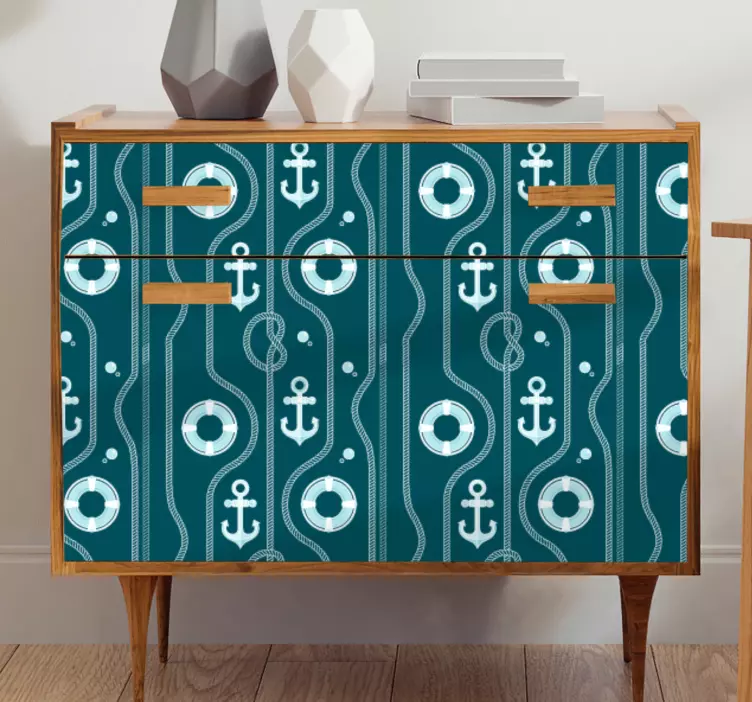 Reference: A49487Featuring a charming nautical theme, this design incorporates anchors and life buoys arranged in a rhythmic pattern. The combination of lines and circular elements evokes a maritime feel, perfect for enhancing a coastal-inspired space.