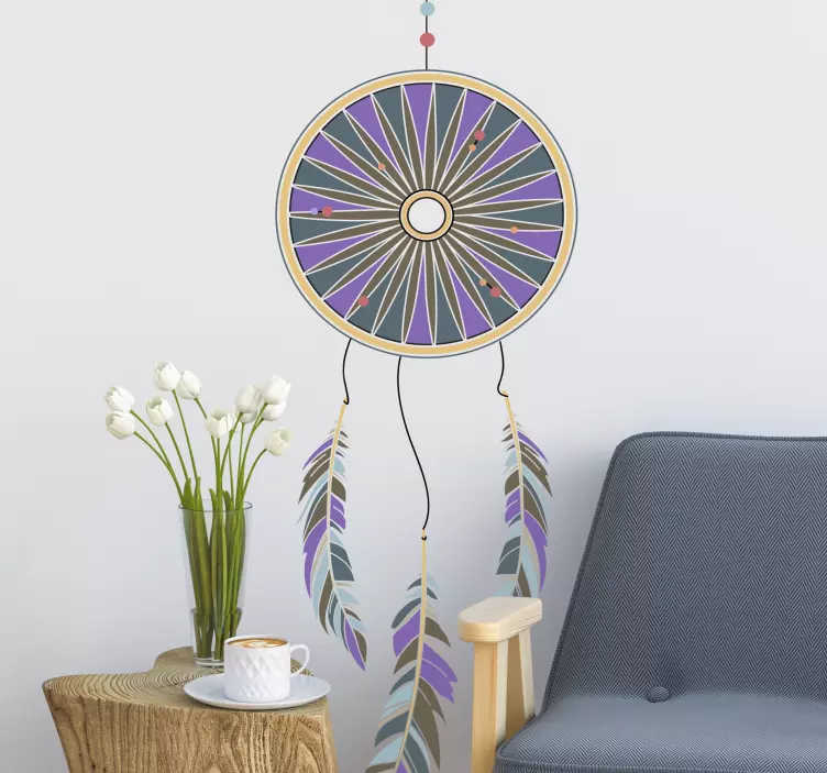 Transform your space with our Decoration wall sticker dream catcher design, a stunning combination of artistry and spirituality. This captivating design features a vibrant purple dreamcatcher adorned with intricate geometric patterns and flowing feathers, embodying a bohemian spirit that adds a colorful touch to any room. Its whimsical illustration invites positive energy and sweet dreams into your home!