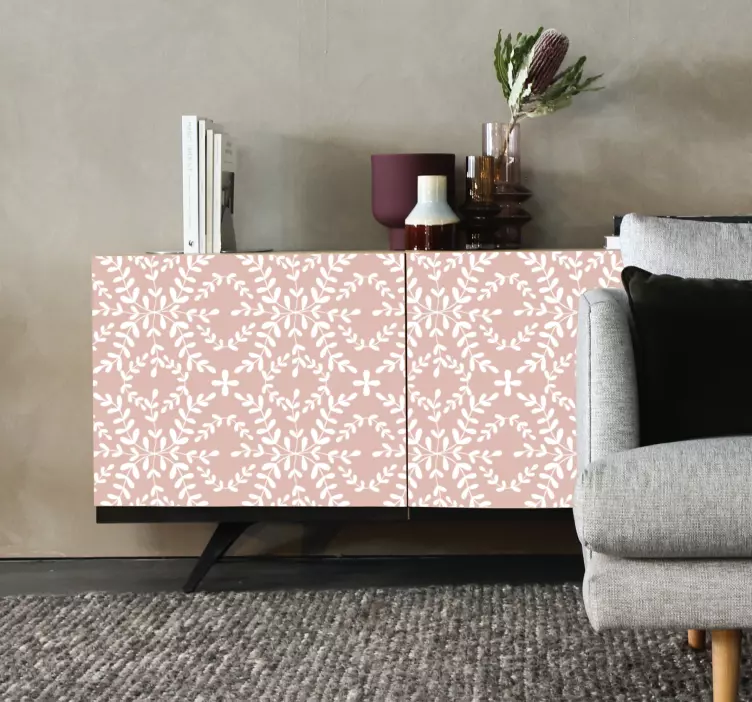Transform your space with our Decoration wall sticker elaborate leaf design, a stunning blend of pink hues and elegant leaves that form an intricate ornamental pattern. This modern and abstract design beautifully complements furniture while adding a touch of floral sophistication. The soft tones create a calming atmosphere, making it a perfect addition to any room!