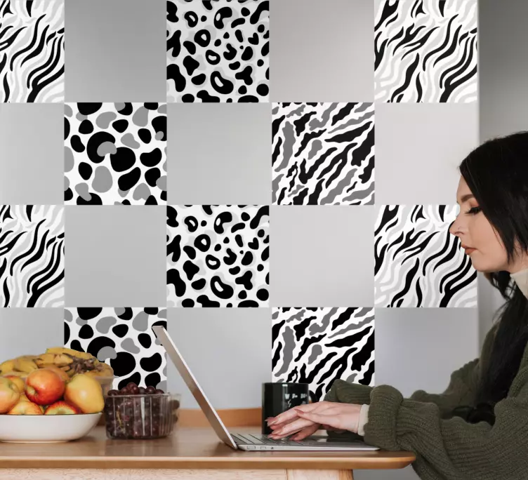 Transform your space with our Decoration wall sticker elegant patterned tiles, featuring a stunning blend of tile and geometric designs that evoke the essence of modern art. This captivating design showcases a unique leopard animal print in a monochrome palette, creating an abstract texture that adds sophistication and intrigue to any wall. Perfect for those looking to elevate their decor, these tiles effortlessly combine elegance and contemporary style!