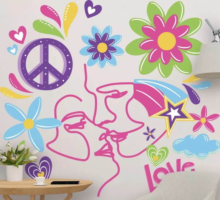 Transform your space with our Decoration wall sticker peaceful flower hearts, a vibrant and playful design that radiates love and peace. Featuring a colorful array of flowers and hearts captured in expressive line art, this urban-inspired piece brings a romantic touch to any wall. Its unique graphical representation will inspire joy and positivity in your home or workspace!