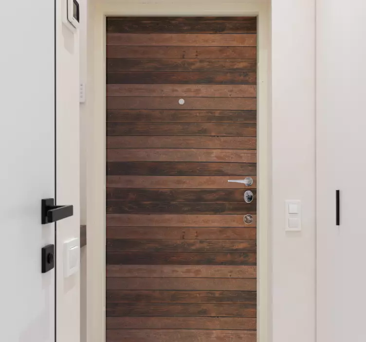 Transform your space with our Door sticker wooden door finish, designed to bring the warm essence of natural wood into your home. The graphic design features rich brown tones and a realistic texture of horizontal wooden planks, making it an ideal choice for any interior entrance. This stunning adhesive elevates your door's aesthetic, adding a touch of elegance and charm to your living space!