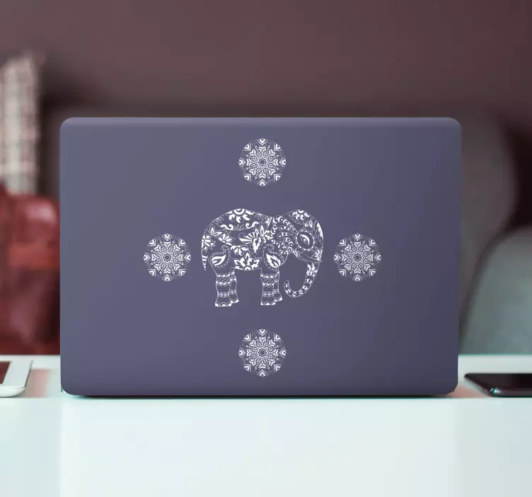 Enhance your laptop's appearance with this elegant and easy-to-use laptop cover decal. The design features a beautifully hand-drawn elephant in mandala art, accompanied by classic art impressions. Made from high-quality vinyl, this unique laptop decal is highly resistant and durable. Upgrade your laptop's look with this original and eye-catching design. Add to cart now!