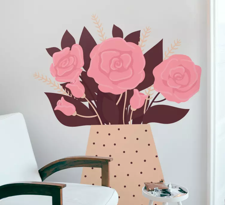Introducing the Flower Wall Sticker Blush Blossom Arrangement, a stunning graphic design that brings the beauty of nature indoors! This exquisite floral illustration features delicate cloves, vibrant roses, and charming flowers elegantly displayed in a vase. Transform your home decor with this lively arrangement that captures the essence of blooming beauty and the serenity of nature.